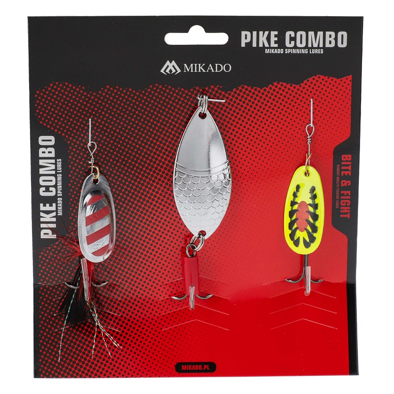 The Mikado SET Spinners Pike features three expertly selected spinning spoons designed specifically for targeting pike. Moreover – with their unique color combinations, these spinners are highly effective in attracting pike in various water conditions.