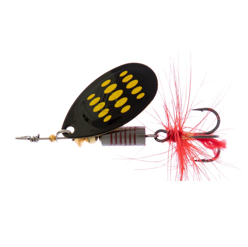 Een opvallend kenmerk van de Hypnotic Spinner is het rode kwastje aan de dreg, dat de visuele aantrekkingskracht vergroot. Dit extra element verhoogt de kans op het aantrekken van vis, vooral in troebel water. Bovendien maken zijn levendige kleuren en dynamische beweging hem onweerstaanbaar voor roofvissen zoals snoek, baars en forel.