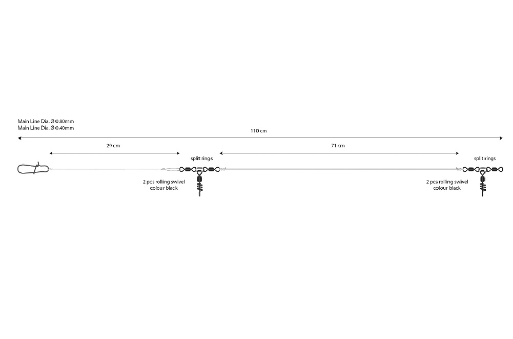 • Mocna żyłka główna 0,8 mm z wężykiem o średnicy 0,4 mm.